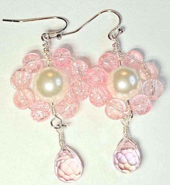 baby pink glass crystals adorn a big oversized pearly centerpiece