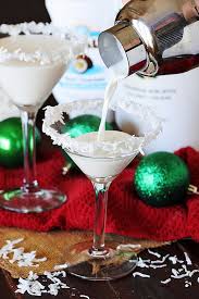 - Dip the rim of one martini glass in the sugar mixture, ensuring that the entire rim gets well coated. Immediately dip sugared rim in coconut.