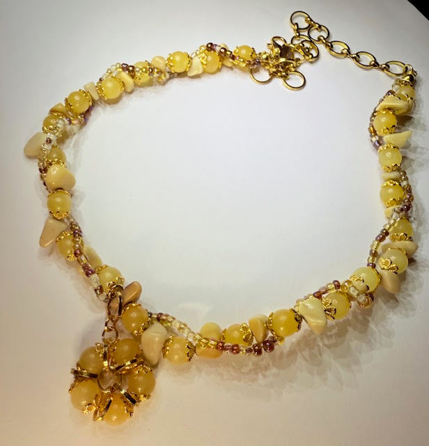 inspired by the golden-hour glow of a perfectly mixed cocktail where honeyed warmth meets effortless charm. yellow jade and honey calcite natural stones.