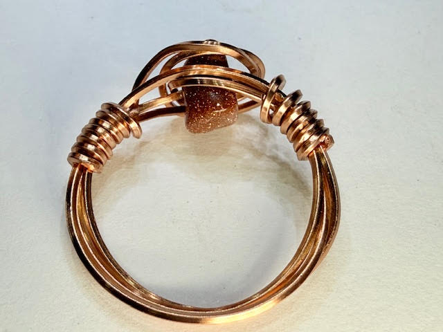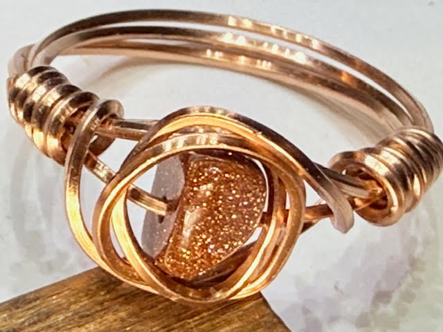inspired by the slow swirl of an old fashioned at golden hour. rose wire wraps like liquid metal around shimmering goldstone.