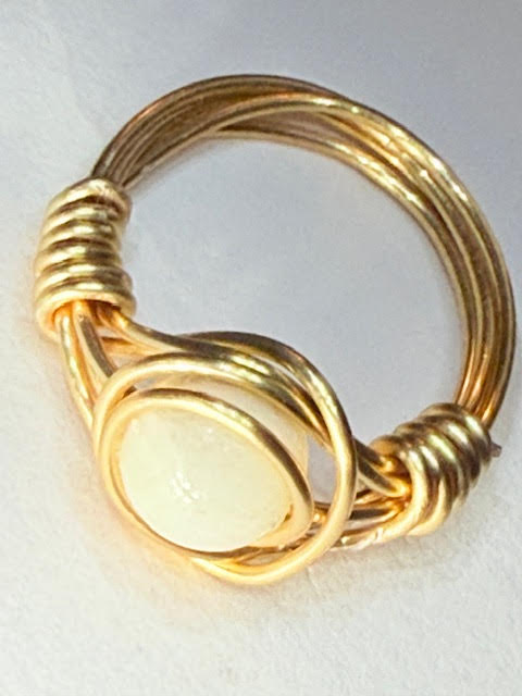 this opalite stone ring with a pearlescent glow is wrapped in eternal gold. this ring shimmers with quiet confidence.